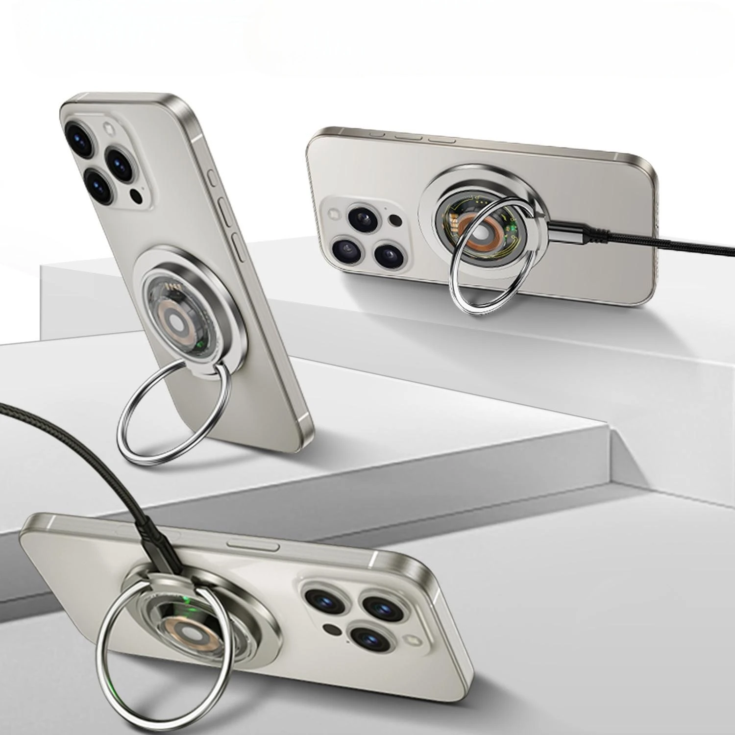 1. 20W magnetic wireless charging ring holder, three in one for iPhone, headphones, and watch.