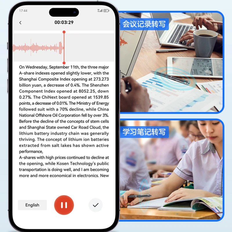 4. High quality recording, real-time transcription of text. Real time transcription of text with an accuracy rate of up to 98%, making meeting minutes and study notes easy to handle.